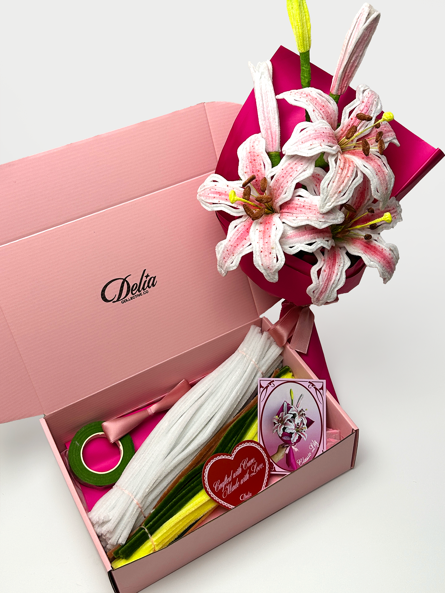 The Classic Lily Bouquet DIY Kit lets you handcraft a timeless bouquet of pink lilies that looks as real as fresh blooms. Each kit comes with all the materials you need to create your own everlasting flowers — fun to make, beginner-friendly, and perfect as a unique handmade gift.